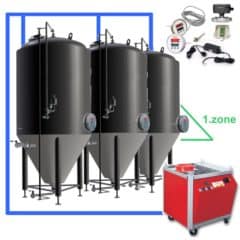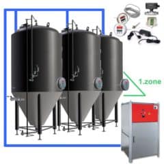 Complete fermentation sets that includes several classical cylindrical-conical tanks with volume 2000 liters each and all equipment needed for cooling and temperature regulation of CC tanks.