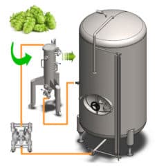 Fully equipped sets for extraction of hops to cold beer : Dry hopping / Cold hopping. Each set includes one non-insulated beer storage tank that is cooled by air. We suppose the beer storage tank will be added to room cooled by air in your brewery.
