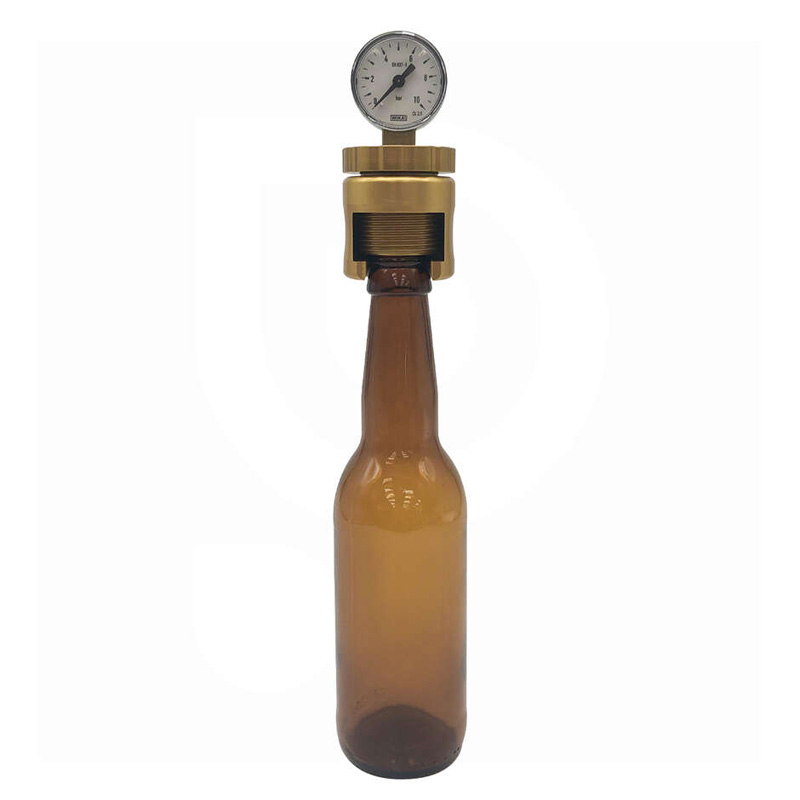 The universal aluminum aphrometer (simple in-bottle carbon-dioxide meter) is an indispensable tool for controlling fermentation by checking the pressure rise in beer bottles with crown caps of 26mm.