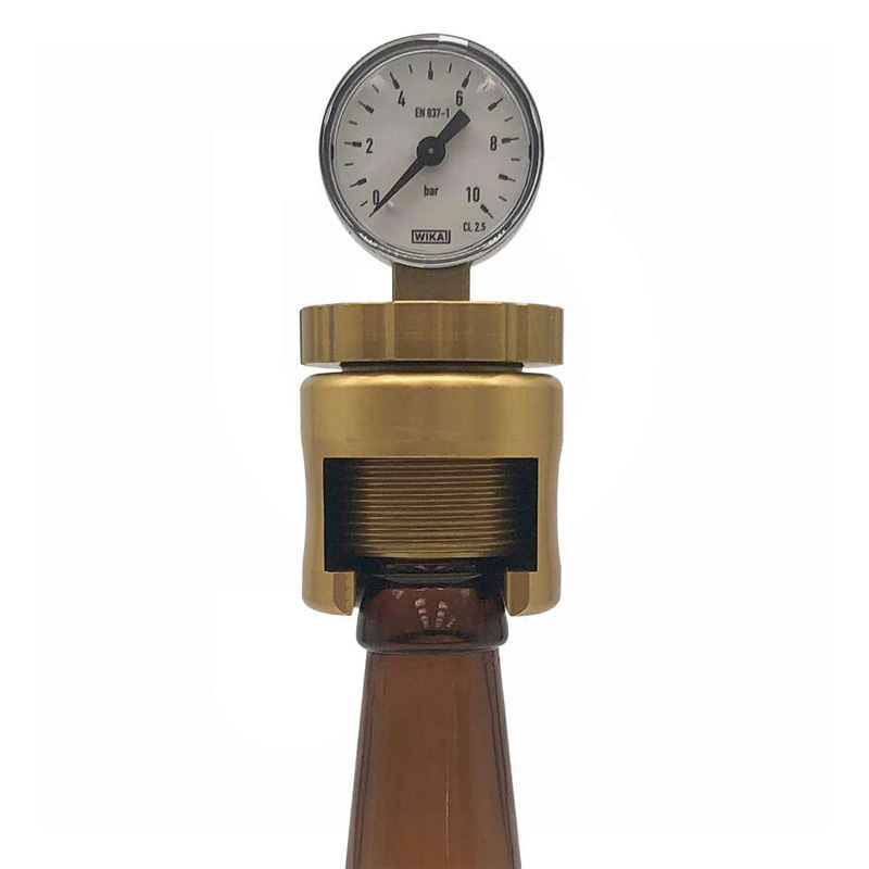 The universal aluminum aphrometer (simple in-bottle carbon-dioxide meter) is an indispensable tool for controlling fermentation by checking the pressure rise in beer bottles with crown caps of 29mm.