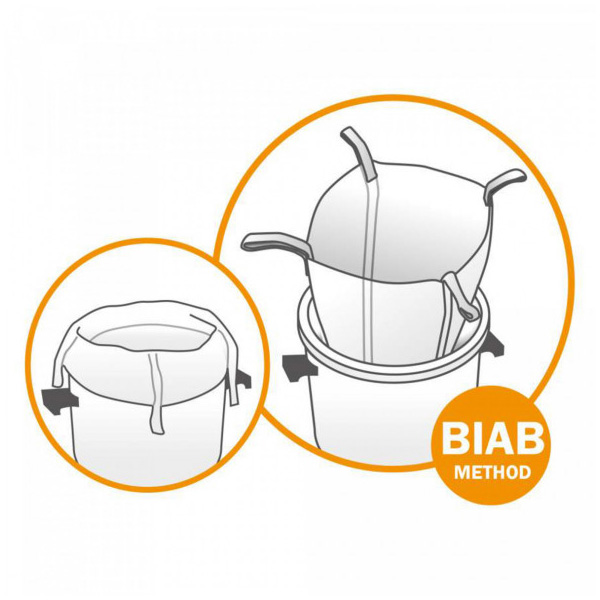 The Polyester Brewing Bag 25 L (Diameter 36cm x height 31 cm, mesh size: 200 μm) – for the In a Bag beer wort or kombucha tea brewing method.