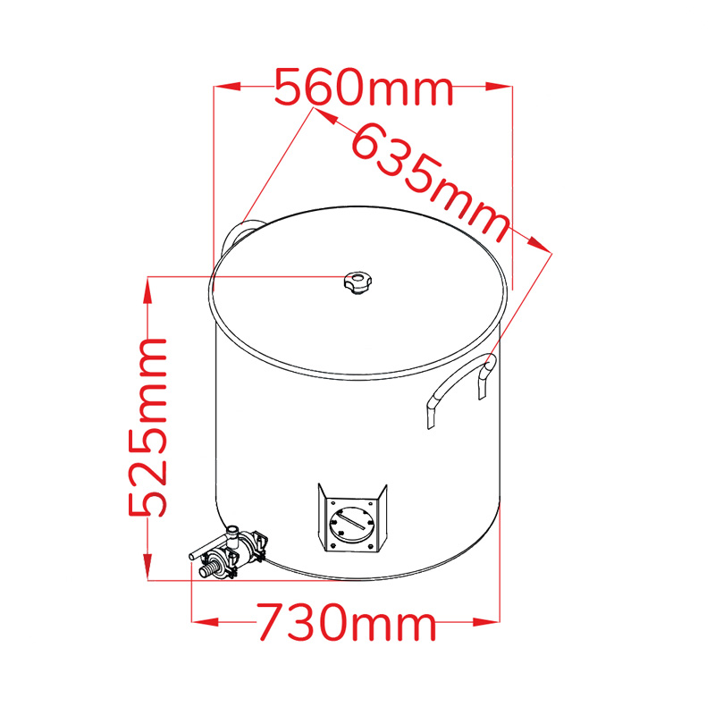 Catalogue » Breweries, beer and cider production equipment – the product catalogue » HBE : Homebrewing Equipment » BFPTC-100 : Stainless steel brewing / fermenting pot 100L with TriClamp 1.5″ discharge valve