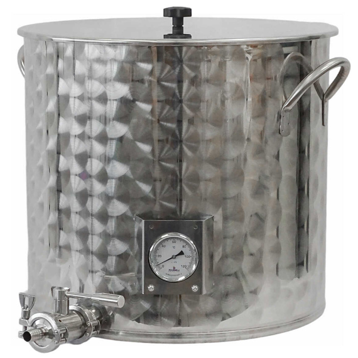 Universal stainless steel production pot with capacity of 100 liters designed for simple brewing or fermenting beverages like beer wort, kombucha, tea etc.