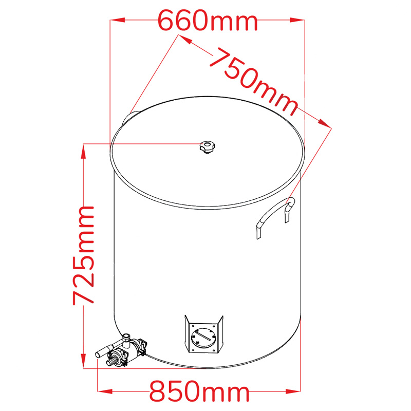 Universal stainless steel production pot with capacity of 200 liters designed for simple brewing or fermenting beverages like beer wort, kombucha, tea etc.