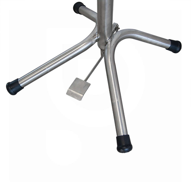 Simple single-position stainless steel bottle rinser or bottle blower on the stand activated with a pedal. Made of AISI 304 stainless steel – suitable for contact with foodstuffs.