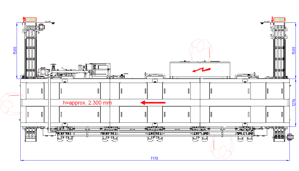 | Conveyors / belt : | 1. main belt single lane belt – 1.180 mm wide2. feeding belt conveyor:multi – row conveyor (length: 1,5 m); plastic belt, height 1.100 ± 50mm 3. exit belt conveyor: multi – row conveyor (length: 1,5 m); |