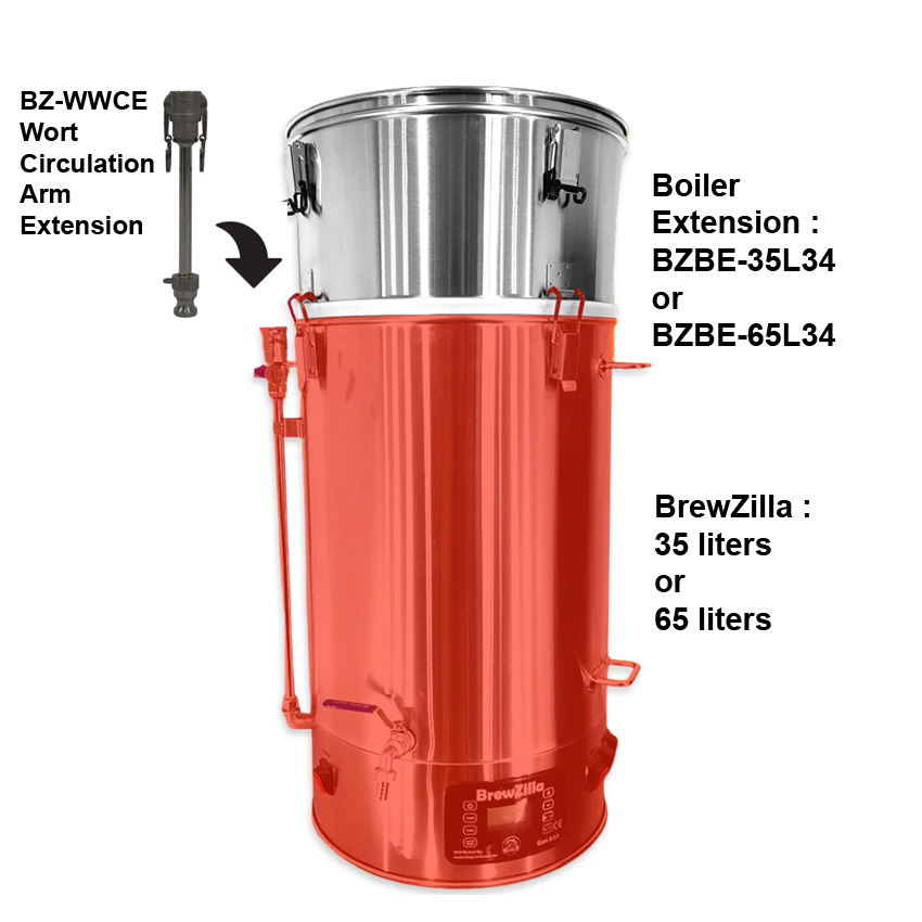 BZBE-65L34 : Boiler extension (+24L) for the BrewZilla Robobrew 65L GEN 3/4 (KegLand KL22248)