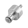 The stainless steel universal cap-adapter between the PET screwed throat and the BALL LOCK coupler – for gas or beverage. For the FileZilla fermenters, Kegerators, PET bottles. This connector for the FermZilla fermenters can be used to connect the fermenter to bottle with CO2 or for transfer of beer out from the fermenter with hose. This connector is part of the pressure kit as well.