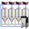 The complete beer fermentation set. This set CFSCT1-4xCCT100SLP includes all equipment necessary for professional production of beer using the fermentation and maturation of wort using the fermentation and maturation process in four cylindrically-conical low-pressure fermenters. This set is also designed for the production of cider from fruit or carbonized wine.