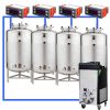 The complete beer fermentation set. This set CFSCT1-4xFMT500SLP includes all equipment necessary for professional production of beer using the fermentation and maturation of wort using the fermentation and maturation process in four cylindrical low-pressure fermenters. This set is also designed for the production of cider from fruit or carbonized wine.