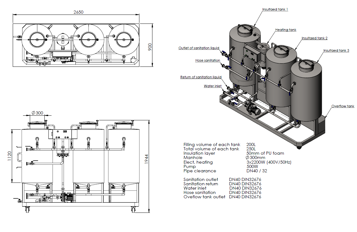 CIP-203 / Mobile CIP station 3x200 liters | Cleaning-In-Place machineParameters
