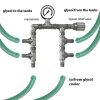 The compact manifold CWC-CMC234M is designed to connect of water cooler (with output/input plastic hoses 2x 25mm hoses) to 2 cooling zones or branches with plastic hoses 4x 19mm which are connected to cooled tanks using flexible plastic pipes, saving you the cost of a fixed piping installation at the first stages of starting your winery or your brewery. This set is equipped with manometer for monitoring of pressure in the tank cooling system.