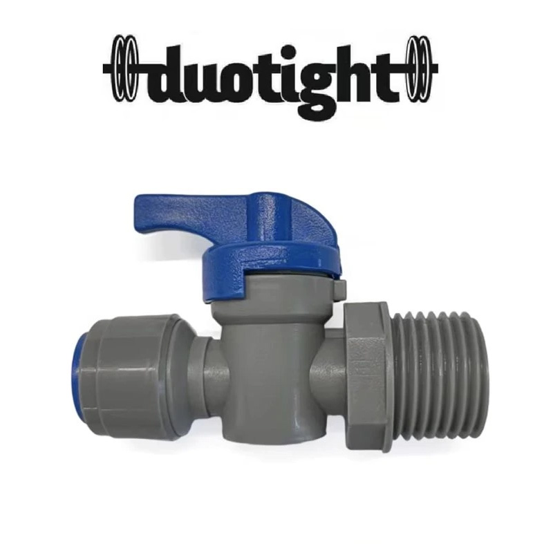 DuoTight plastic valve with quick connection between the BSPP 1/2″ male thread and hose (flexi pipe) D=9.5mm (3/8″).