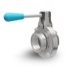 Disc valve (butterfly valve) DN32 with inlet DN32 DIN 32676 “TriClamp” and outlet DN32 DIN 32676 “TriClamp”, with security locking device and gaskets. For use with pipe lines or tanks equipped with DIN 32676 “TriClamp” DN32 throat-connection . Fully sanitary union designed especialy for food production processiong technologies.