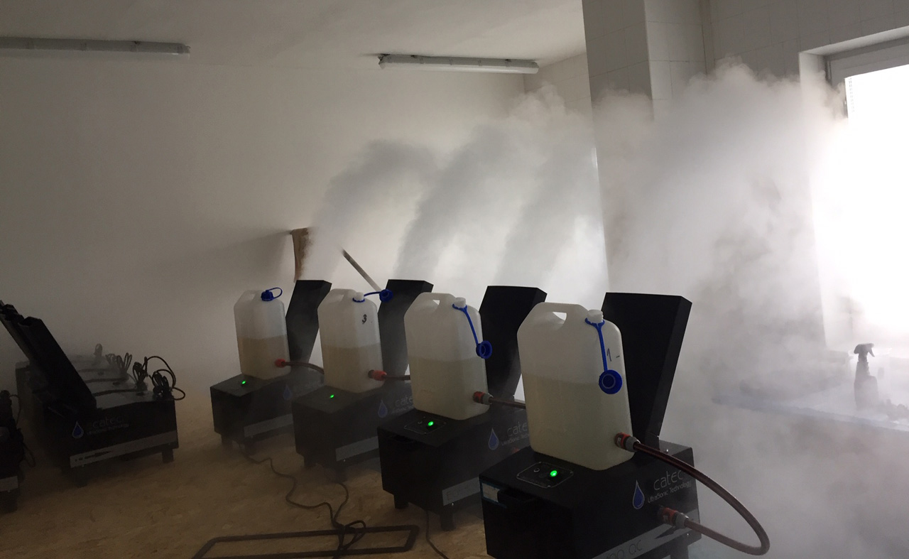 • Just like after gassing, you do not have to rinse the spaces afterwards, because ECA ultrasonic fogging creates a very fine aerosol that leaves no traces. Physically, it is an area between dewing and gassing.