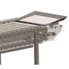 The rollers are moved by chains while rotating around their axis. Scrolling speed is adjustable netween 3-10 meters per minute. Working height is 1 meter. Capacity up to 3000 kg / hour. The construction is made of stainless steel.