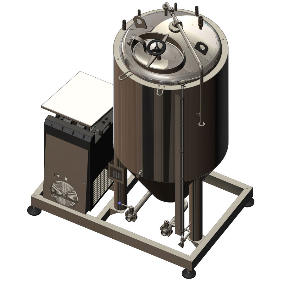 The compact unit for the beer fermentation and maturation process with integrated cooling BREWORX MODULO FUIC-CHP1C-1x750CCT is an independent mobile equipment with one cylindrical-conical tank 750 liters (total capacity 852 liters). The FUIC unit includes everything what is necessary to the main fermentation of beer, to the beer maturation under pressure, to an isobaric filling beer into kegs or bottles or to serving beer into drink glasses directly from the fermenters that are included in this unit. The FUIC unit may be used also for the fermentation of other alcoholic beverages like sparkling wine, cider etc.