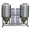 - 2 pcs of CCT 2000 liters (usable volume) / 2300 liters (total volume) – Cylindroconical fermenters made of stainless steel that are insulated by PUR foam, cooled by water or glycol that circulated in cooling channels of double-jacket