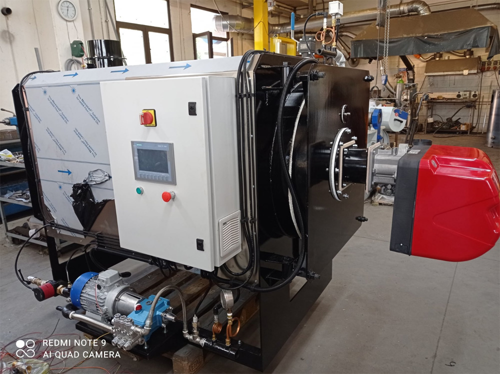 The AS series of steam generators is constituted by steam generators of small potentiality where the circulation of the supply water happens through a piston pump which pushes it to a heat exchanger with serpentine situated into the combustion chamber.