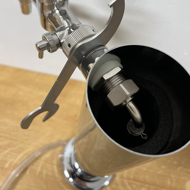 Set of components needed for the connection of a standard beverage tap with 5/8″ outer thread to the Dispense stand body for the KegLand Kegerator (all types).