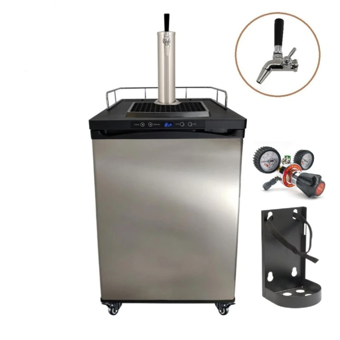 The CO2 pressure cylinder and the pressure regulator are not part of the set and must be purchased separately. The CO2 pressure cylinder can be shipped on a pallet with the kegerator.