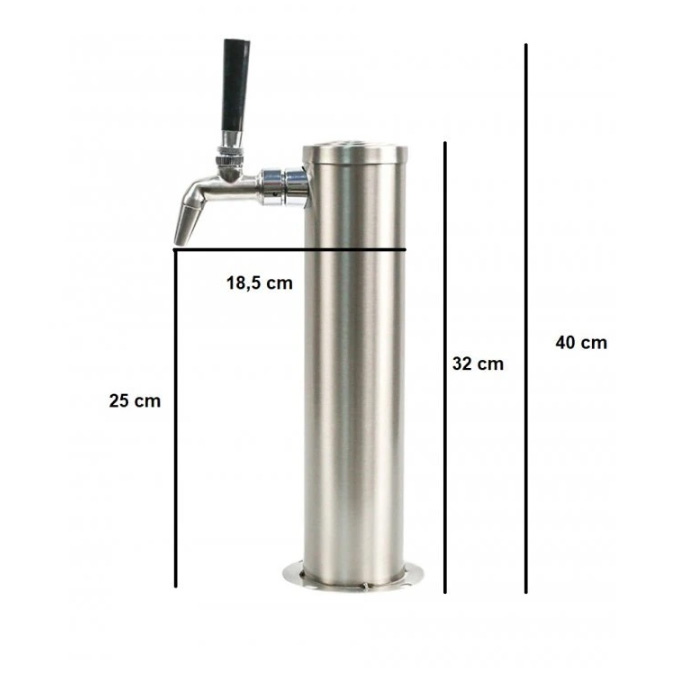 - Height max : 1165 mm high with castors and the stand (the dispense tower and taps)