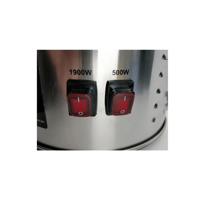 This model runs off 1-phase 220V power and has two heating elements (1900w and 500w) that can be controlled independently. Includes draining AISI 304 stainless steel 1/2″ ball valve with 13mm barb (approx. 1/2″).
