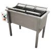 The PBA-100MG pasteuriser is an ideal solution for pasteurising of cold-filled bottles. It has a capacity of 100 liters (approximately 50pcs x 1 litre bottles per batch or greater capacity for smaller bottles). The machine includes an manually controlled electronic pasteurisation system. The bottles are manually placed into steel box and then they are dived in the hot water bath. You can set a desired pasteurisation temperature. Then bottles are moved out of the bath to be cooled down (slowly in air or quickly in cold water). A vat for cold water is not included in the system.