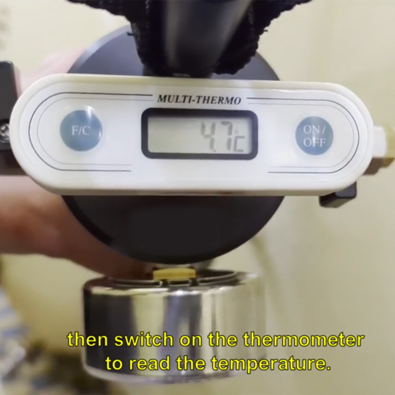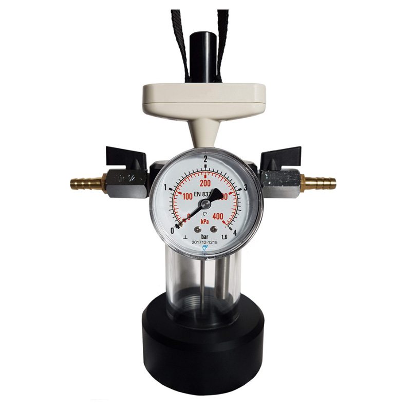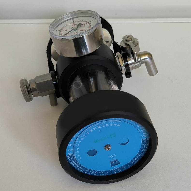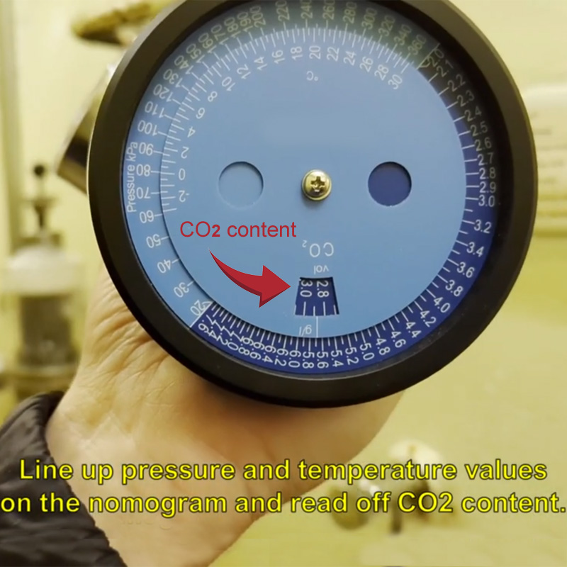 Preceding measurement the operator connects the device (using a rubber flexible hose) to the pressure beverage storage tank or the fermenter or to a special adapted head for a keg. The optional special head makes it possible to attain a necessary overpressure in the KEG cask securing sample withdrawal. The operator fills a vessel by measured sample of beverage (using the ball valves). The mechanical releasing of gas from a beverage is made by manual shaking the device. After attaining a balance the operator can simply read the balance value of the pressure and the temperature. CO2 content can be read on the nomogram. You can modify the formula for the calculation of the CO2 content in specific drinks.
