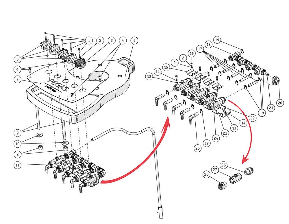 The PEGAS CraftPad switcher 4+1 is a simple switcher for expanding the usability of the PEGAS CrafTap ULTRA filling device. This switcher allows to choose of up to four different kinds of beer for the filling in the bottles using only one filling device.