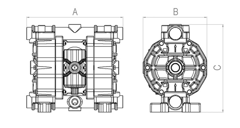 - Pumping against closed discharge without any pump damage. A diaphragm pump will stop if discharge will be closed (1:1 ratio between air and discharge pressure).