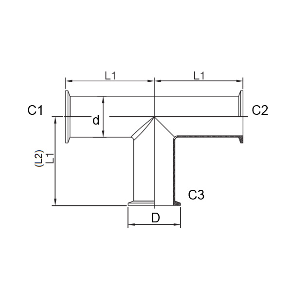 Connections : 3pcs x TriClamp DIN 32676 DN25 / TC 1.5 (Disc diameter of 50.5mm)