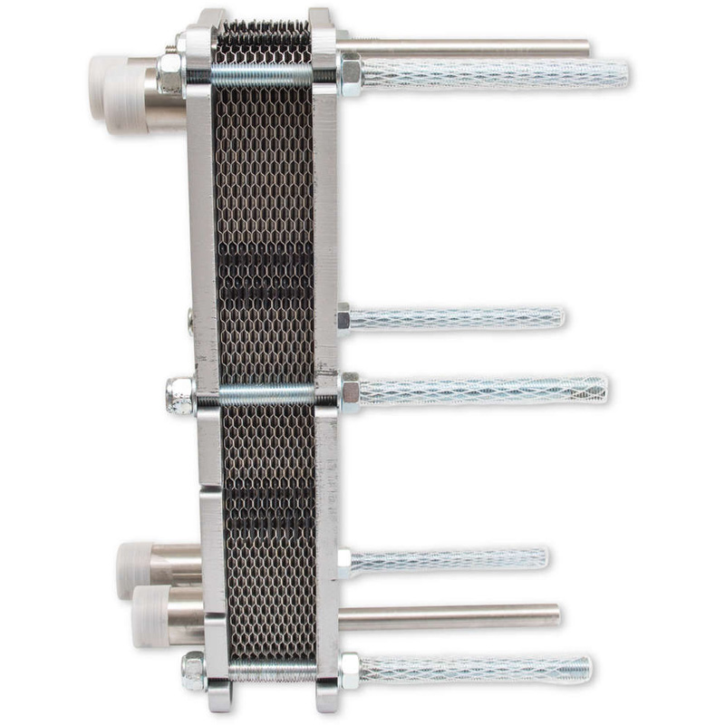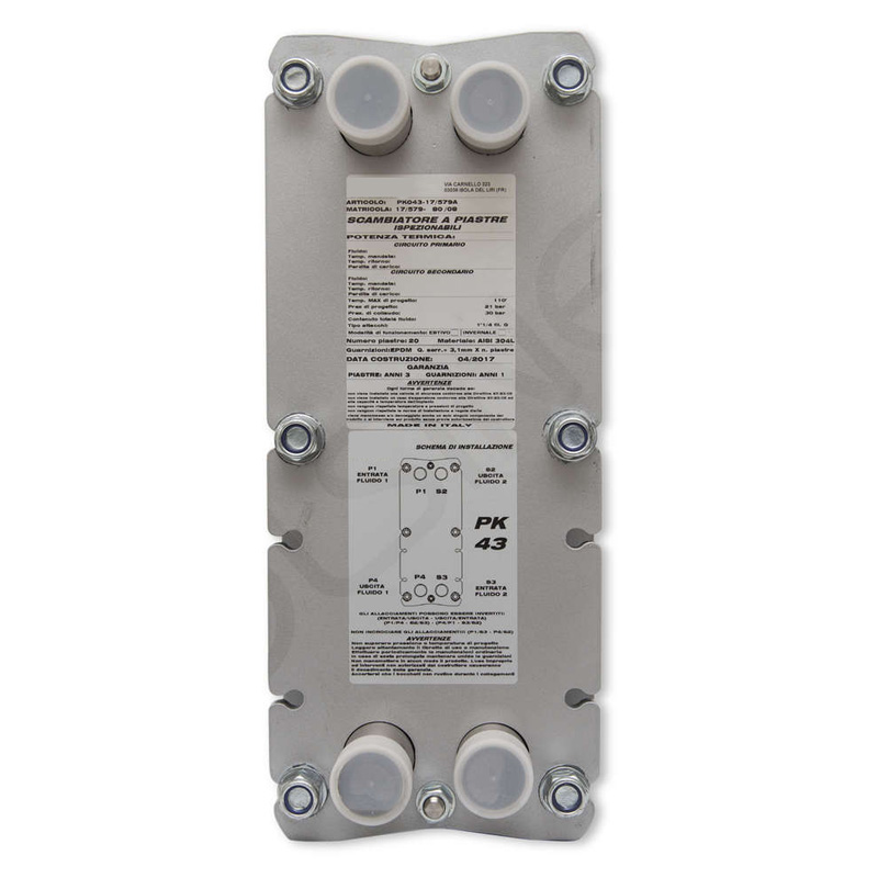 - Heat exchange takes place through the stainless steel plates of the exchanger, without mixing the two fluids.