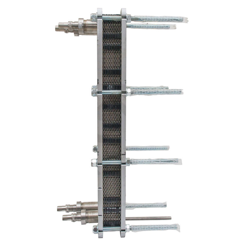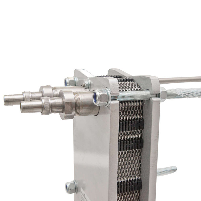 - Heat exchange takes place through the stainless steel plates of the exchanger, without mixing the two fluids.