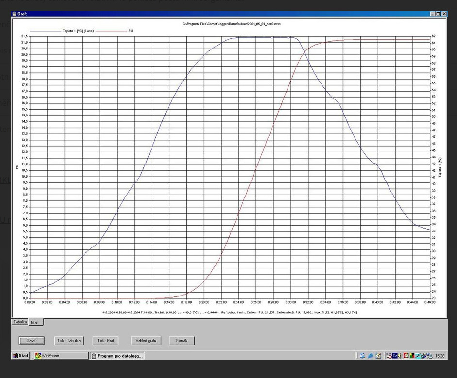 • Graphic display of temperature curves and pasteurization curves