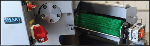 The brush cleaning module with the dry waste scrapers can be also opened, since the module is connected to the frame on hinges.
