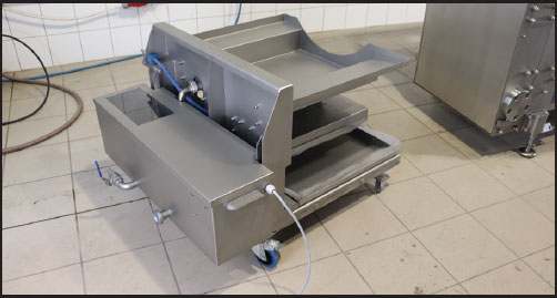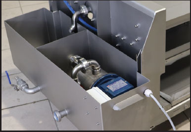 The entire juice collector tank, along with the belt washer unit, can be rolled out on wheels, making it easy to clean