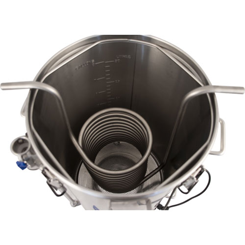 Then lower the chiller into your hot wort and cycle the water through the chiller until you reach the desired temperature.