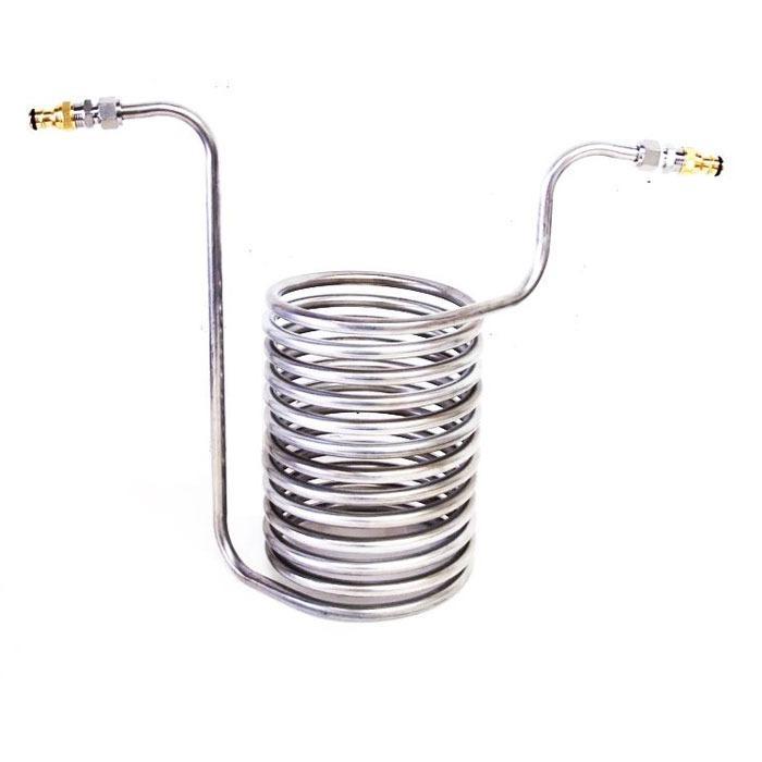 Spiral immersion cooler D=12.7mm (1/2″) x L=8m for rapid cooling of hot wort before fermentation. Usable for use with a brewhouse with capacity 10-100 liters.