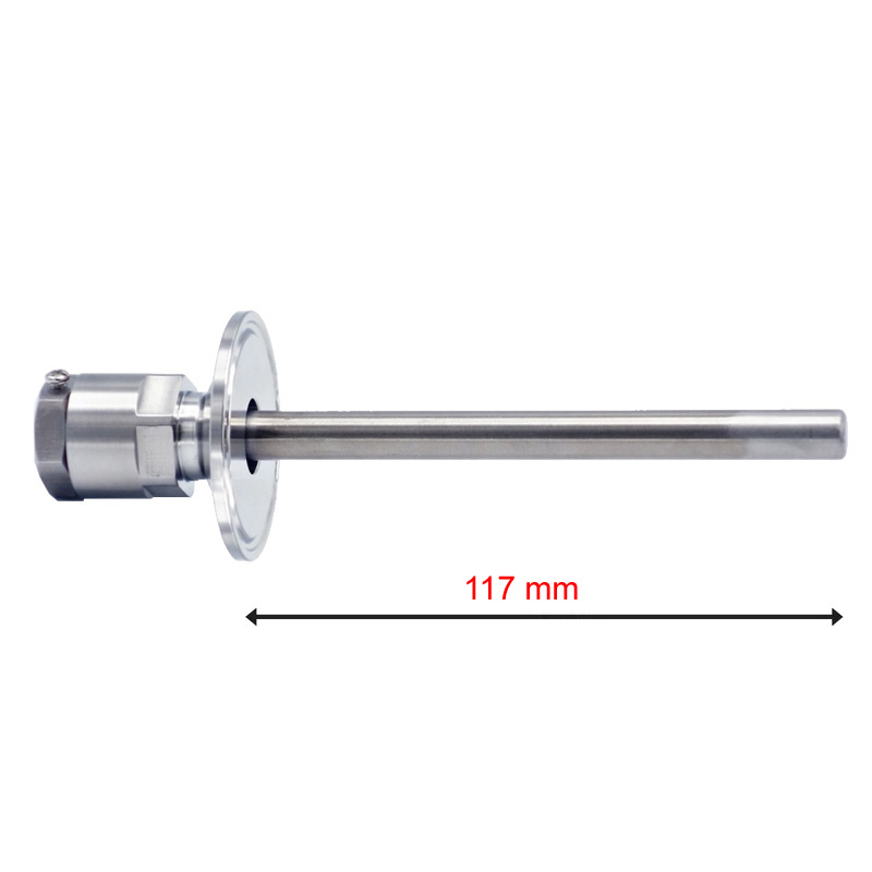Thermometer well (with the screw) TriClamp with the connection disc diameter of 50.5mm (TC 1.5″) and length (depth) of 150 mm (117 mm in a tank). Material : Stainless steel AISI 304.