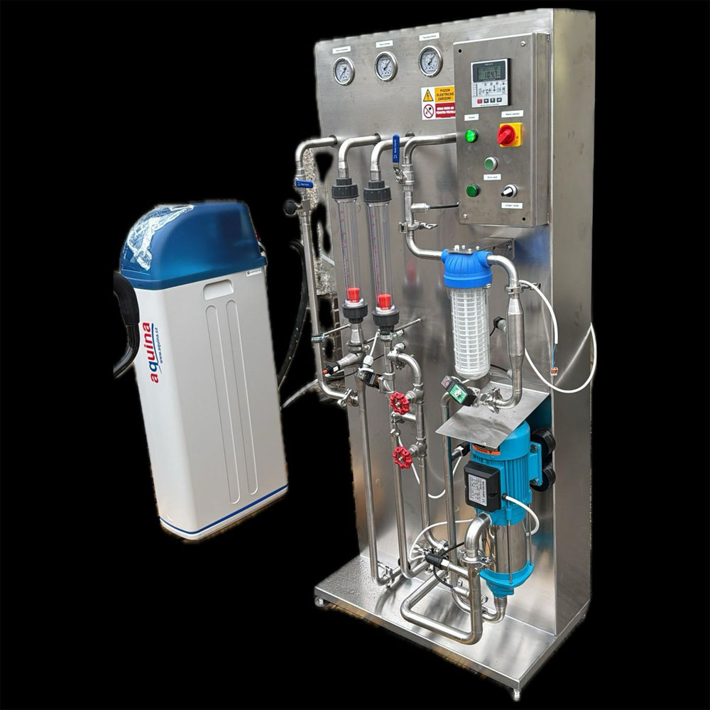 - The reverse osmosis unit must be preceded by a water treatment plant that softens the water to the lowest possible level of german units and fully removes iron and manganese.